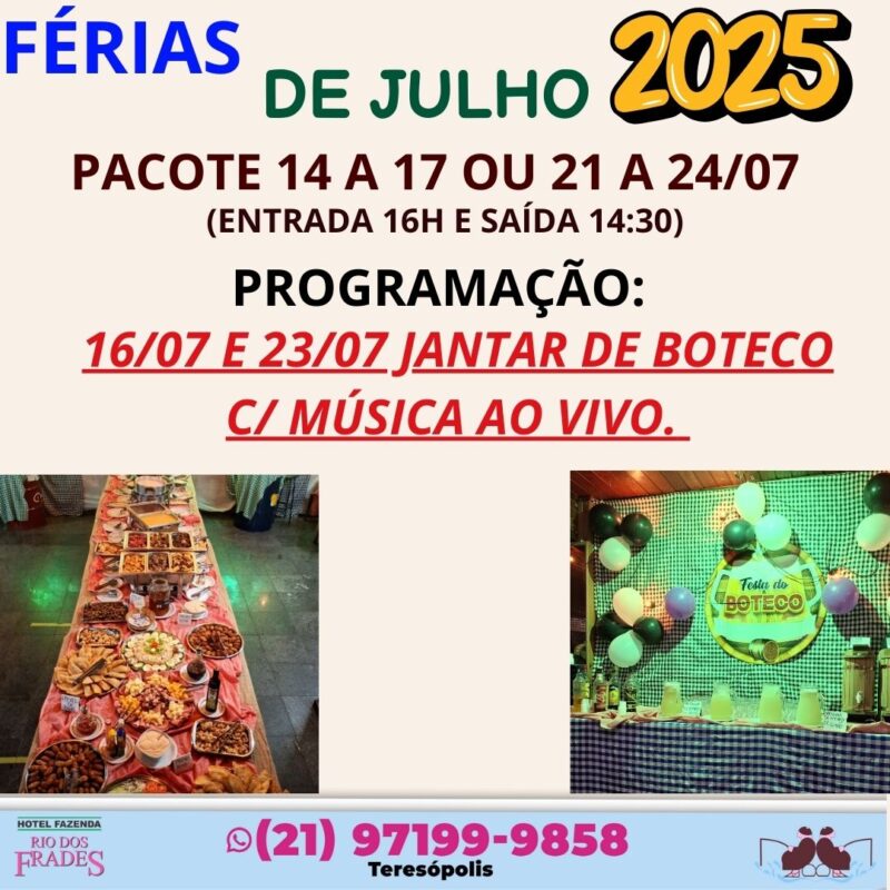 18 jun Pacotes NATAL 2025 18/06/2025 Por riodosfrades 0 comentários ESCOLHA SEU PACOTE! PACOTE 23 A 28/12 E 23 A 26/12. PARA DISPONIBILIDADE, VALORES E RESERVAS ENTRE EM CONTATO CONOSCO VIA MENSAGEM PE...Continue lendo